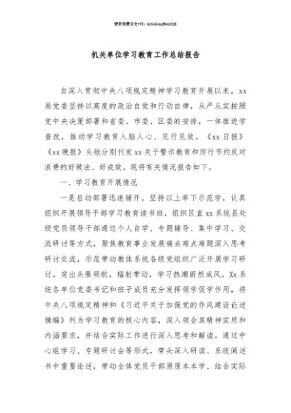 【七哥公文】2025年:【七哥公文】机关单位学习教育工作总结报告+更多免费公文+VX:QiGeGongWen2024+更多免费公文+VX:QiGeGongWen2024