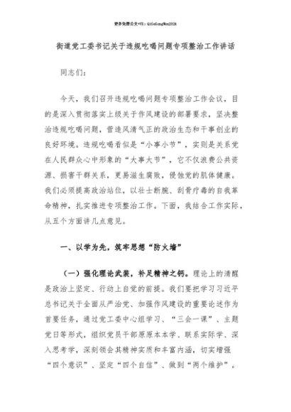 【七哥公文】2025年:【七哥公文】街道党工委书记关于违规吃喝问题专项整治工作讲话+更多免费公文+VX:QiGeGongWen2024+更多免费公文+VX:QiGeGongWen2024