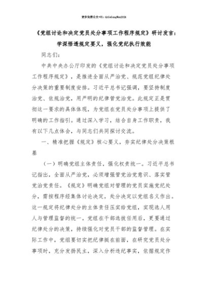 【七哥公文】2025年:【七哥公文】《党组讨论和决定党员处分事项工作程序规定》研讨发言:学深悟透规定要义,强化党纪执行效能+更多免费公文+VX:QiGeGongWen2024+更多免费公文+VX:QiGeGongWen2024