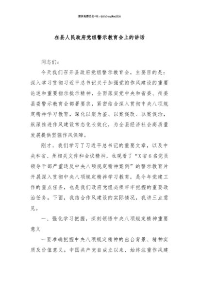 【七哥公文】2025年:【七哥公文】在县人民政府党组警示教育会上的讲话+更多免费公文+VX:QiGeGongWen2024+更多免费公文+VX:QiGeGongWen2024
