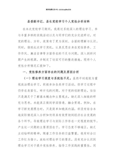 【七哥公文】2025年:【七哥公文】县委副书记、县长党校学习个人党性分析材料+更多免费公文+VX:QiGeGongWen2024+更多免费公文+VX:QiGeGongWen2024