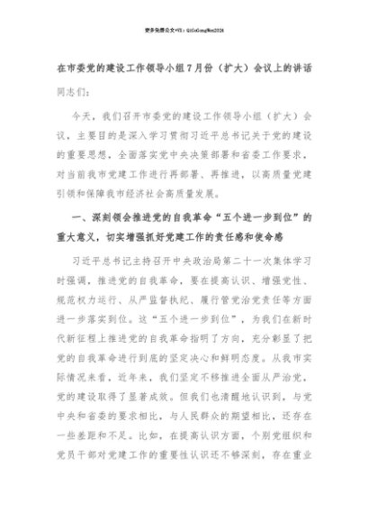 【七哥公文】2025年:【七哥公文】在市委党的建设工作领导小组7月份(扩大)会议上的讲话+更多免费公文+VX:QiGeGongWen2024+更多免费公文+VX:QiGeGongWen2024