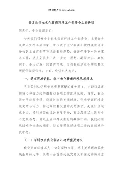 【七哥公文】2025年:【七哥公文】县发改委在优化营商环境工作部署会上的讲话+更多免费公文+VX:QiGeGongWen2024+更多免费公文+VX:QiGeGongWen2024