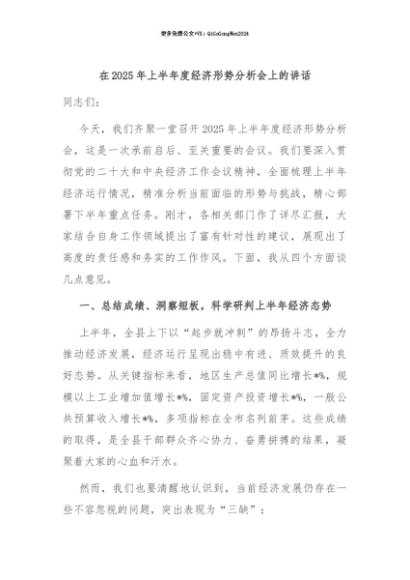 【七哥公文】2025年:【七哥公文】在2025年上半年度经济形势分析会上的讲话+更多免费公文+VX:QiGeGongWen2024+更多免费公文+VX:QiGeGongWen2024