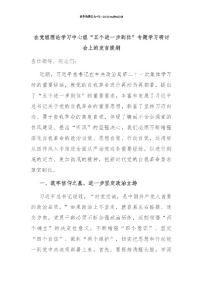 【七哥公文】2025年:【七哥公文】在党组理论学习中心组“五个进一步到位”专题学习研讨会上的发言提纲+更多免费公文+VX:QiGeGongWen2024+更多免费公文+VX:QiGeGongWen2024