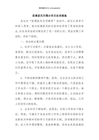 【七哥公文】2025年:【七哥公文】医德医风问题分析及改进措施+更多免费公文+VX:QiGeGongWen2024+更多免费公文+VX:QiGeGongWen2024