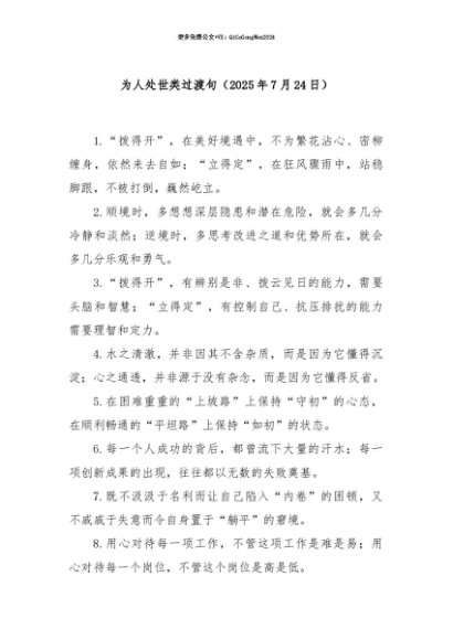 【七哥公文】2025年:【七哥公文】为人处世类过渡句(2025年7月24日)+更多免费公文+VX:QiGeGongWen2024+更多免费公文+VX:QiGeGongWen2024