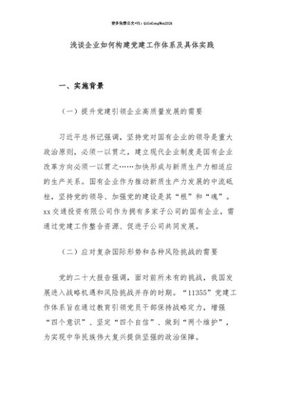 【七哥公文】2025年:【七哥公文】浅谈企业如何构建党建工作体系及具体实践+更多免费公文+VX:QiGeGongWen2024+更多免费公文+VX:QiGeGongWen2024