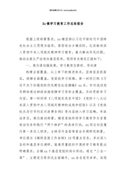 【七哥公文】2025年:【七哥公文】Xx镇学习教育工作总结报告+更多免费公文+VX:QiGeGongWen2024+更多免费公文+VX:QiGeGongWen2024