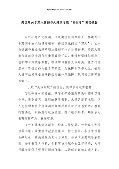【七哥公文】2025年:【七哥公文】某区局关于深入贯彻作风建设专题“回头看”情况报告+更多免费公文+VX:QiGeGongWen2024+更多免费公文+VX:QiGeGongWen2024