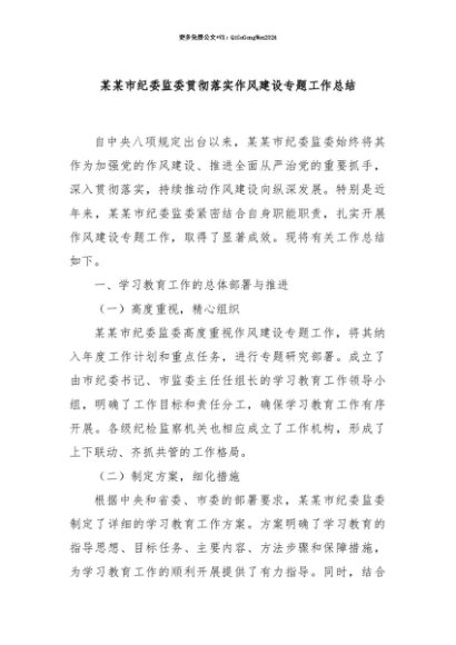 【七哥公文】2025年:【七哥公文】某某市纪委监委贯彻落实作风建设专题工作总结+更多免费公文+VX:QiGeGongWen2024+更多免费公文+VX:QiGeGongWen2024