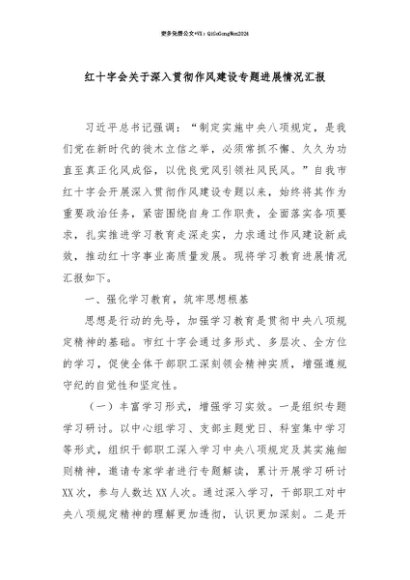【七哥公文】2025年:【七哥公文】红十字会关于深入贯彻作风建设专题进展情况汇报+更多免费公文+VX:QiGeGongWen2024+更多免费公文+VX:QiGeGongWen2024