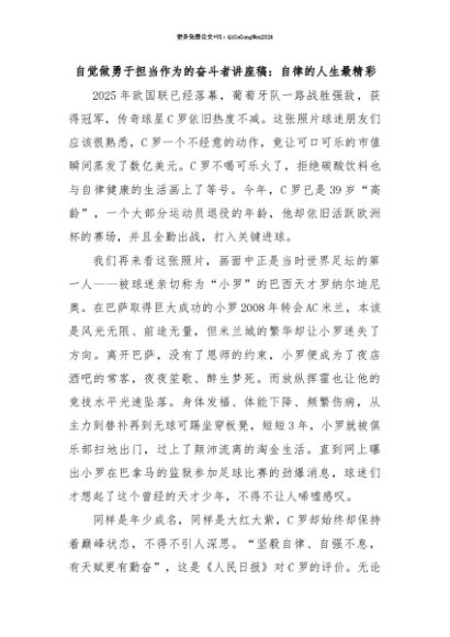 【七哥公文】2025年:【七哥公文】自觉做勇于担当作为的奋斗者讲座稿:自律的人生最精彩+更多免费公文+VX:QiGeGongWen2024+更多免费公文+VX:QiGeGongWen2024