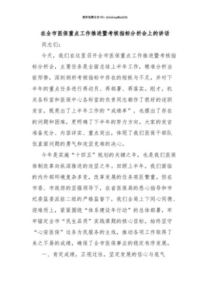 【七哥公文】2025年:【七哥公文】在全市医保重点工作推进暨考核指标分析会上的讲话+更多免费公文+VX:QiGeGongWen2024+更多免费公文+VX:QiGeGongWen2024