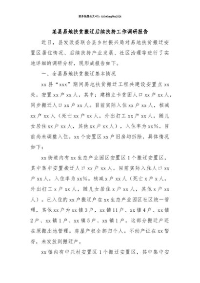 【七哥公文】2025年:【七哥公文】某县易地扶贫搬迁后续扶持工作调研报告+更多免费公文+VX:QiGeGongWen2024+更多免费公文+VX:QiGeGongWen2024