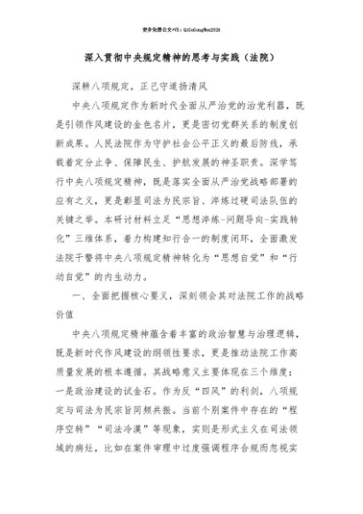 【七哥公文】2025年:【七哥公文】深入贯彻中央规定精神的思考与实践(法院)+更多免费公文+VX:QiGeGongWen2024+更多免费公文+VX:QiGeGongWen2024