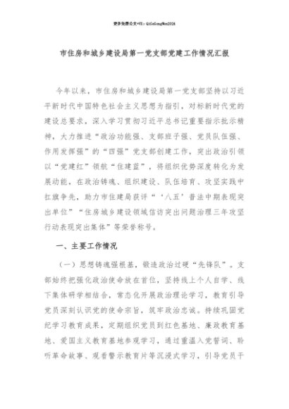 【七哥公文】2025年:【七哥公文】市住房和城乡建设局第一党支部党建工作情况汇报+更多免费公文+VX:QiGeGongWen2024+更多免费公文+VX:QiGeGongWen2024