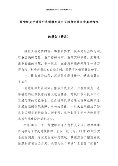 【七哥公文】2025年:【七哥公文】局党组关于对照中央通报形式主义问题开展自查整改情况的报告(精品)+更多免费公文+VX:QiGeGongWen2024+更多免费公文+VX:QiGeGongWen2024