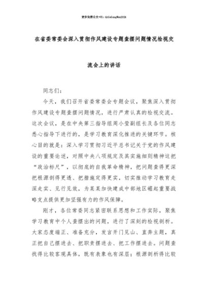 【七哥公文】2025年:【七哥公文】在省委常委会深入贯彻作风建设专题查摆问题情况检视交流会上的讲话+更多免费公文+VX:QiGeGongWen2024+更多免费公文+VX:QiGeGongWen2024