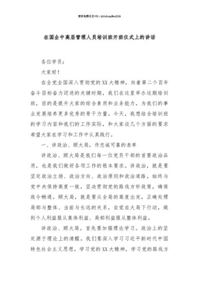 【七哥公文】2025年:【七哥公文】在国企中高层管理人员培训班开班仪式上的讲话+更多免费公文+VX:QiGeGongWen2024+更多免费公文+VX:QiGeGongWen2024
