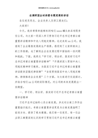 【七哥公文】2025年:【七哥公文】在调研国企时讲授专题党课的讲话+更多免费公文+VX:QiGeGongWen2024+更多免费公文+VX:QiGeGongWen2024
