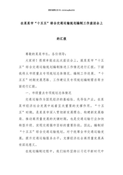 【七哥公文】2025年:【七哥公文】在某某市“十五五”综合交通运输规划编制工作座谈会上的汇报+更多免费公文+VX:QiGeGongWen2024+更多免费公文+VX:QiGeGongWen2024