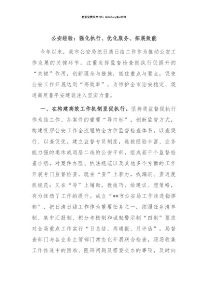 【七哥公文】2025年:【七哥公文】公安经验:强化执行、优化服务、拓展效能+更多免费公文+VX:QiGeGongWen2024+更多免费公文+VX:QiGeGongWen2024