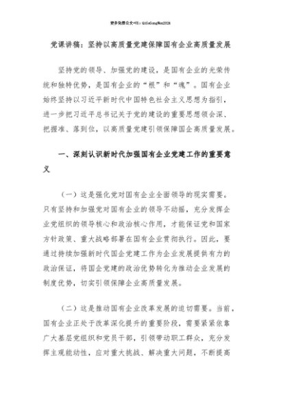 【七哥公文】2025年:【七哥公文】党课讲稿:坚持以高质量党建保障国有企业高质量发展+更多免费公文+VX:QiGeGongWen2024+更多免费公文+VX:QiGeGongWen2024