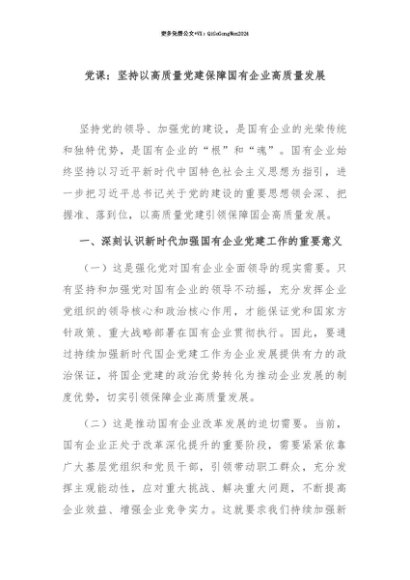 【七哥公文】2025年:【七哥公文】党课:坚持以高质量党建保障国有企业高质量发展+更多免费公文+VX:QiGeGongWen2024+更多免费公文+VX:QiGeGongWen2024
