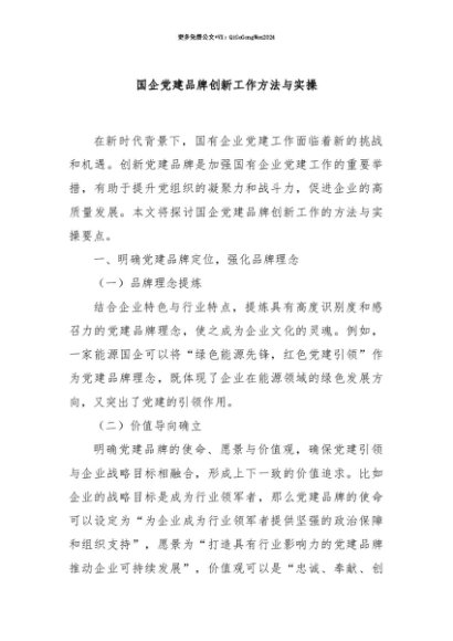【七哥公文】2025年:【七哥公文】国企党建品牌创新工作方法与实操+更多免费公文+VX:QiGeGongWen2024+更多免费公文+VX:QiGeGongWen2024