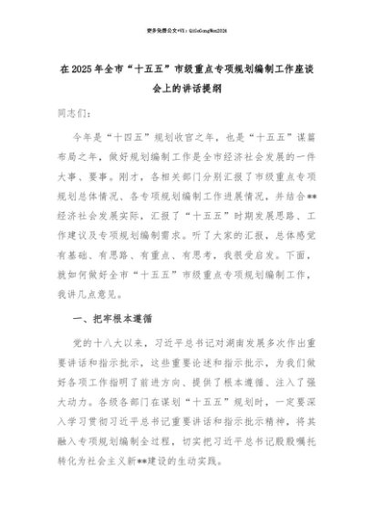 【七哥公文】2025年:【七哥公文】在2025年全市“十五五”市级重点专项规划编制工作座谈会上的讲话提纲+更多免费公文+VX:QiGeGongWen2024+更多免费公文+VX:QiGeGongWen2024