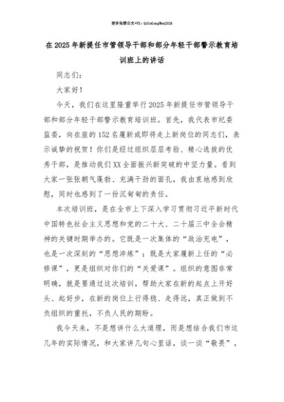【七哥公文】2025年:【七哥公文】在2025年新提任市管领导干部和部分年轻干部警示教育培训班上的讲话+更多免费公文+VX:QiGeGongWen2024+更多免费公文+VX:QiGeGongWen2024