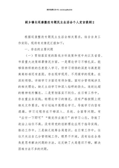 【七哥公文】2025年:【七哥公文】副乡镇长巡察整改专题民主生活会个人发言提纲2+更多免费公文+VX:QiGeGongWen2024+更多免费公文+VX:QiGeGongWen2024