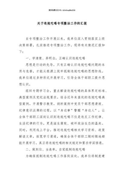 【七哥公文】2025年:【七哥公文】关于违规吃喝专项整治工作的汇报+更多免费公文+VX:QiGeGongWen2024+更多免费公文+VX:QiGeGongWen2024