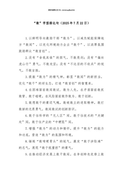 【七哥公文】2025年:【七哥公文】“敢”字型排比句(2025年7月22日)+更多免费公文+VX:QiGeGongWen2024+更多免费公文+VX:QiGeGongWen2024
