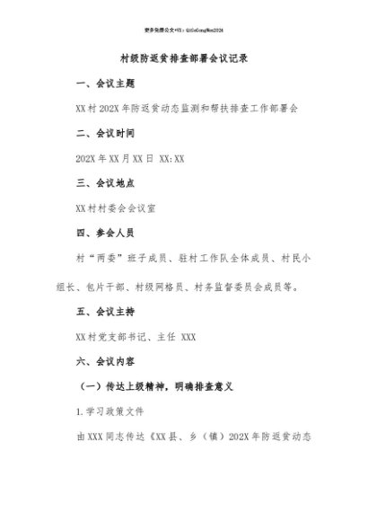 【七哥公文】2025年:【七哥公文】村级防返贫排查部署会议记录+更多免费公文+VX:QiGeGongWen2024+更多免费公文+VX:QiGeGongWen2024