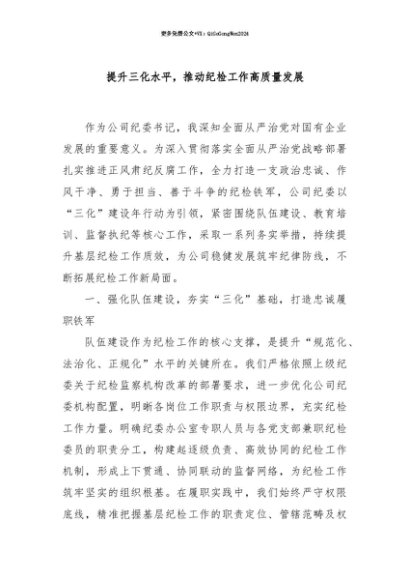 【七哥公文】2025年:【七哥公文】提升三化水平,推动纪检工作高质量发展+更多免费公文+VX:QiGeGongWen2024+更多免费公文+VX:QiGeGongWen2024
