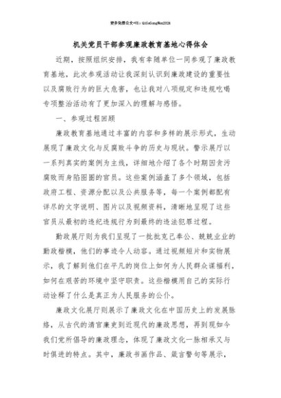 【七哥公文】2025年:【七哥公文】机关党员干部参观廉政教育基地心得体会+更多免费公文+VX:QiGeGongWen2024+更多免费公文+VX:QiGeGongWen2024