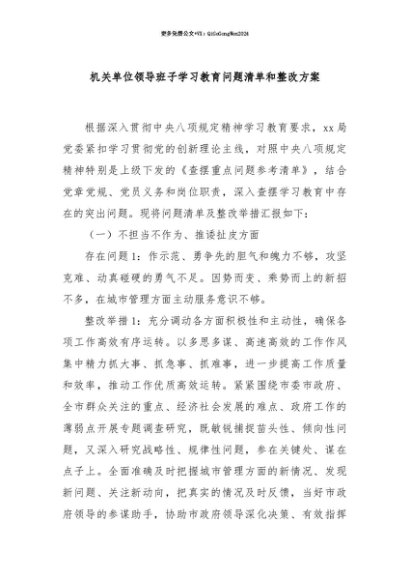 【七哥公文】2025年:【七哥公文】机关单位领导班子学习教育问题清单和整改方案+更多免费公文+VX:QiGeGongWen2024+更多免费公文+VX:QiGeGongWen2024