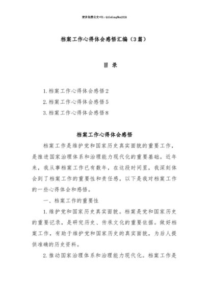 【七哥公文】2025年:【七哥公文】(3篇)档案工作心得体会感悟汇编+更多免费公文+VX:QiGeGongWen2024+更多免费公文+VX:QiGeGongWen2024
