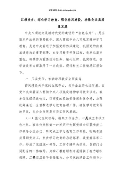 【七哥公文】2025年:【七哥公文】汇报发言:深化学习教育,强化作风建设,助推企业高质量发展+更多免费公文+VX:QiGeGongWen2024+更多免费公文+VX:QiGeGongWen2024