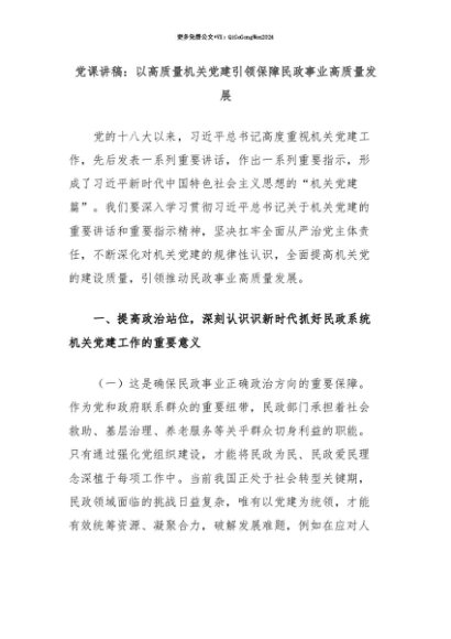 【七哥公文】2025年:【七哥公文】党课讲稿:以高质量机关党建引领保障民政事业高质量发展+更多免费公文+VX:QiGeGongWen2024+更多免费公文+VX:QiGeGongWen2024