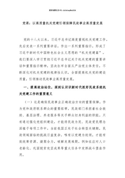 【七哥公文】2025年:【七哥公文】党课:以高质量机关党建引领保障民政事业高质量发展+更多免费公文+VX:QiGeGongWen2024+更多免费公文+VX:QiGeGongWen2024