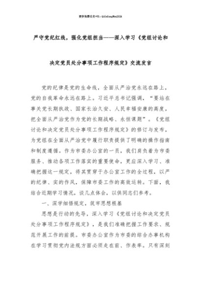 【七哥公文】2025年:【七哥公文】严守党纪红线,强化党组担当——深入学习《党组讨论和决定党员处分事项工作程序规定》交流发言+更多免费公文+VX:QiGeGongWen2024+更多免费公文+VX:QiGeGongWen2024
