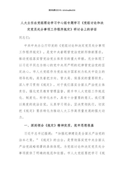 【七哥公文】2025年:【七哥公文】人大主任在党组理论学习中心组专题学习《党组讨论和决定党员处分事项工作程序规定》研讨会上的讲话+更多免费公文+VX:QiGeGongWen2024+更多免费公文+VX:QiGeGongWen2024