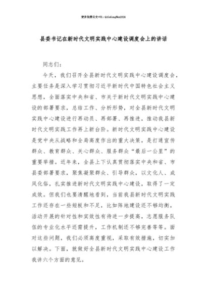 【七哥公文】2025年:【七哥公文】县委书记在新时代文明实践中心建设调度会上的讲话+更多免费公文+VX:QiGeGongWen2024+更多免费公文+VX:QiGeGongWen2024