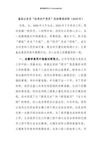 【七哥公文】2025年:【七哥公文】基层公务员“优秀共产党员”先进事迹材料(2025年)+更多免费公文+VX:QiGeGongWen2024+更多免费公文+VX:QiGeGongWen2024