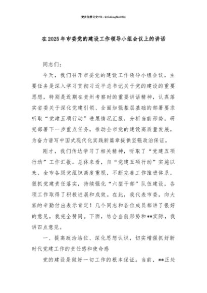 【七哥公文】2025年:【七哥公文】在2025年市委党的建设工作领导小组会议上的讲话+更多免费公文+VX:QiGeGongWen2024+更多免费公文+VX:QiGeGongWen2024