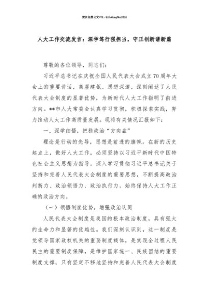 【七哥公文】2025年:【七哥公文】人大工作交流发言:深学笃行强担当,守正创新谱新篇+更多免费公文+VX:QiGeGongWen2024+更多免费公文+VX:QiGeGongWen2024