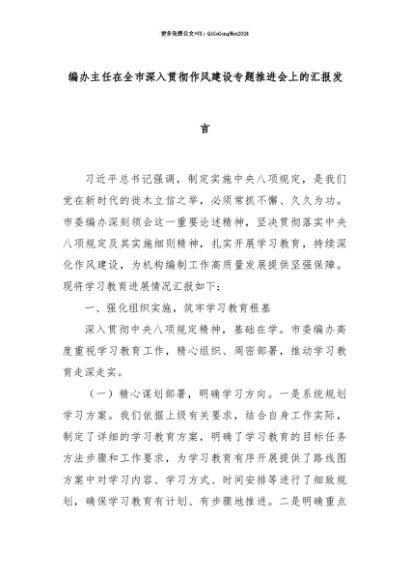 【七哥公文】2025年:【七哥公文】编办主任在全市深入贯彻作风建设专题推进会上的汇报发言+更多免费公文+VX:QiGeGongWen2024+更多免费公文+VX:QiGeGongWen2024